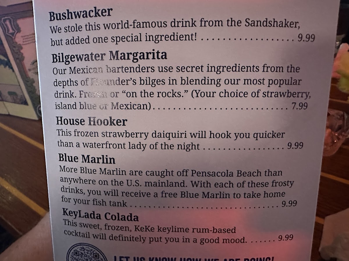 More Blue Marlin are caught off Pensacola Beach than anywhere on the U.S. mainland. With each of these frosty drinks, you will receive a free Blue Marlin to take home for your fish tank.